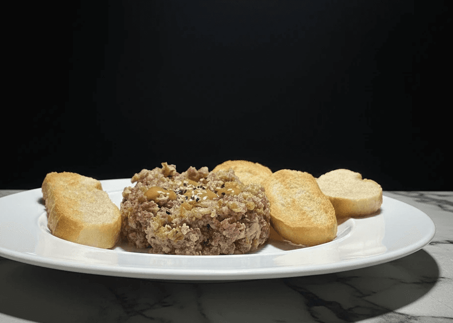 Fuet, Pepinillo, Cebolla con aliño de AOVE, Mostaza y Tajín 11,50