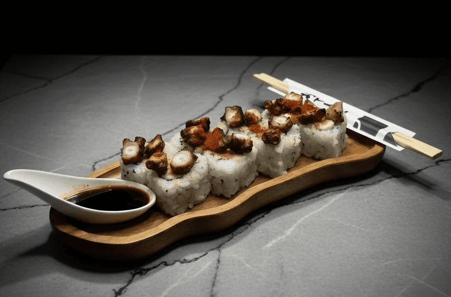 8 UNIDADES. 2 Uds. de Salmón, 2 Uds. Atún, 2 Uds. De Jamón y 2 Uds. Pulpo a la Brasa. Opción eleccion del chef